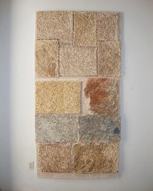 ceramic on cardboard mounted on wood